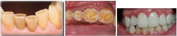 Initial stages : one can notice wear of the lower front teeth seen as a flattening of the surface, craze lines/thin fracture lines in the front teeth along with accumulation of deposits and bleeding of gums mainly in the lower front teeth. As the upper teeth bite totally over the lower teeth, the function of your teeth will be poor especially when chewing food.
