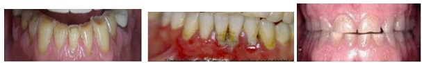 If left to progress, the top edge of the lower teeth will often wear very early and extensively and sometimes even upper teeth wear, resulting in generalized sensitivity. Sudden Chipping off of teeth, regular bleeding of gums noticed esp. while brushing are seen. Also with time, the gum behind the upper teeth and in front of the lower teeth can get damaged due to the top edges of teeth biting into the gums called gingival recession. Your smile can also be affected by this condition, as the upper teeth can wear on their chewing surfaces overtime, gums look unaesthetic. This can be a very serious issue and often leads to loss of the front teeth. Bad breath may be noticed as a side effect of the gum disease and deposits in the teeth.