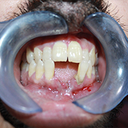 Diastema occurs when there is an unequal relationship between the size of the teeth and the jaw. It is sometimes caused or exacerbated by the action of a labial frenulum (the tissue connecting the lip to the gum),by tongue thrusting or spreading of teeth due to periodontal diseases.